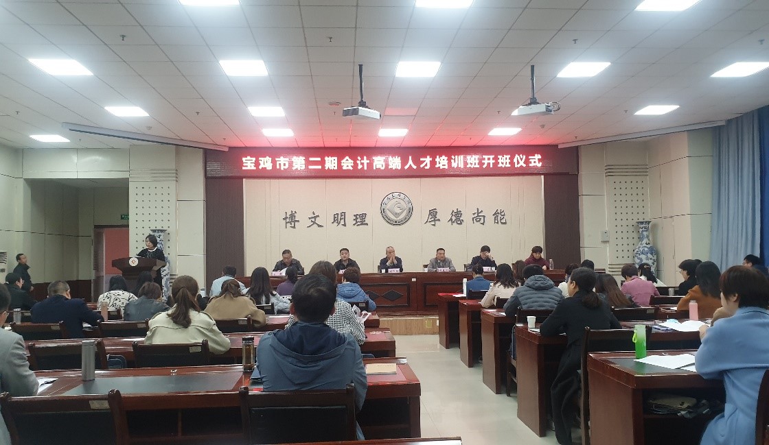 开班仪式上,刘辉对宝鸡市第二期会计高端人才培训表示热烈欢迎,并就学院在服务地方经济发展方面的工作和会计专业建设情况作了重点介绍。杨君对会计高端人才培训班开班表示祝贺,并宣读了本期培训班课程安排及考核要求。王清立对培训班提出了要求,希望参加培训的学员珍惜此次学习机会,努力提升自己,为宝鸡市会计事业发展作出新贡献,并对学院的教学组织安排表示感谢。最后,学员代表李文英作了表态发言,承诺定会珍惜本次培训机会,努力学习,不断提高自身的会计综合素质。