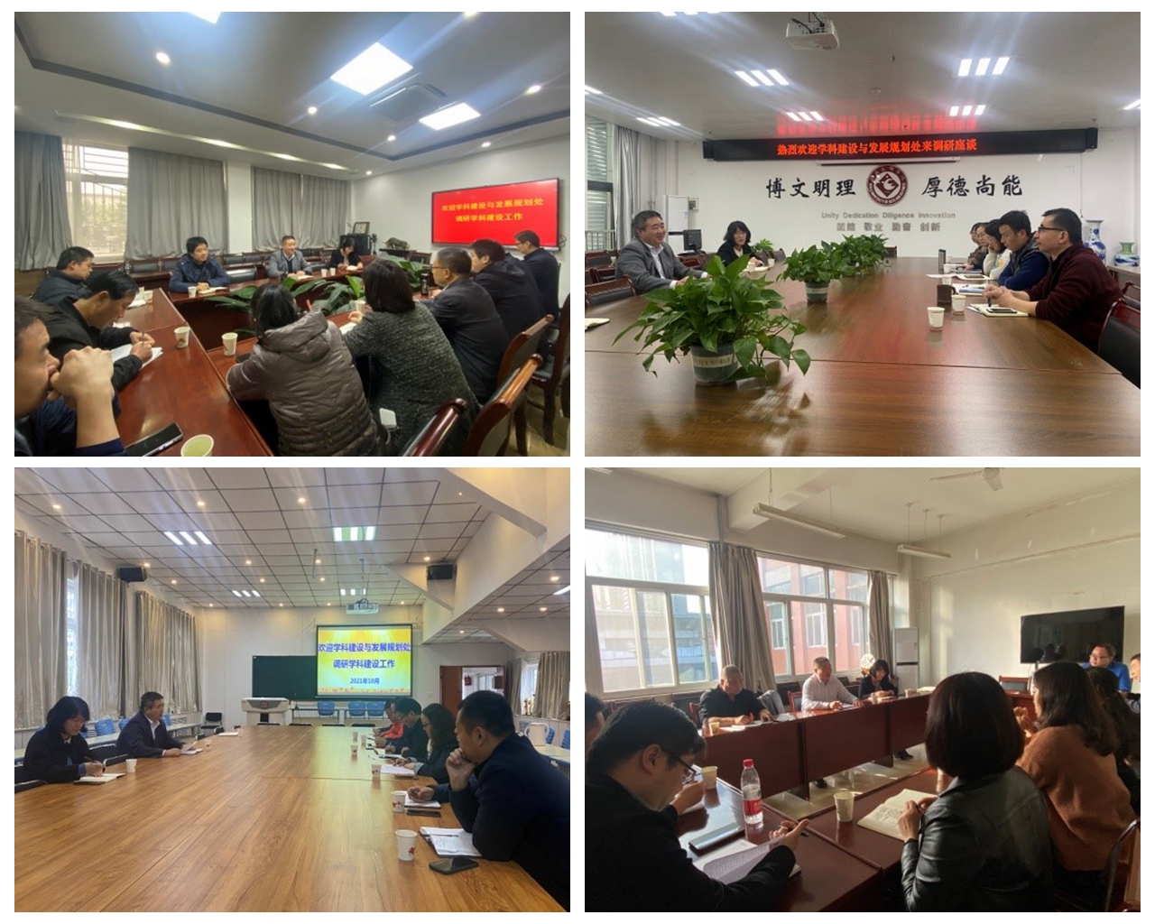 为深入了解学科建设工作情况,9月14日至10月19日,学科建设与发展规划处开展了专题调研工作,到我校17个二级学院调研学科建设情况。各二级学院院长、领导班子部分成员、学科负责人、学科方向负责人、学术骨干等参加了调研。