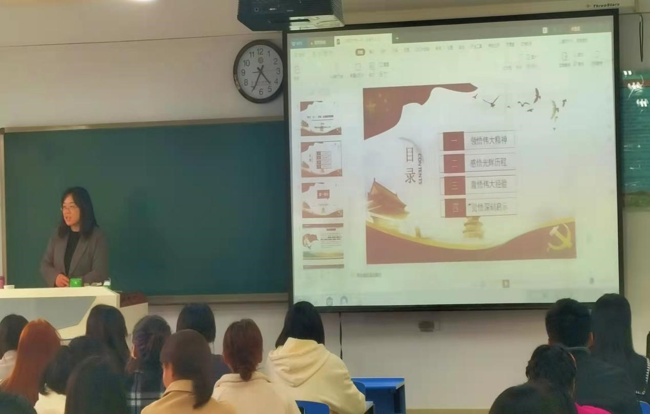 王红梅从领悟伟大精神、感悟光辉历程、彻悟伟大经验、觉悟深刻启示四个方面深入解读中国共产党百年奋斗的光辉历程、伟大成就、宝贵经验和实践启示,解读伟大建党精神的深刻内涵和时代价值。报告深入浅出、内容丰富、通俗易懂,帮助师生深化了对习近平总书记“七一”重要讲话精神的理解和把握。师生表示,要积极响应习近平总书记和党中央的号召,认真学习贯彻“七一”重要讲话精神,赓续红色血脉,坚定理想信念,把党史学习教育成果转化为持续奋斗的强大动力,努力为学校事业发展作出新的贡献。(教育学院党委 文、图/米艳龙 审核/白晓旭)