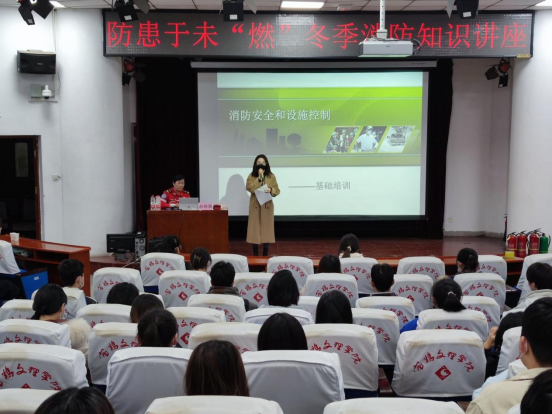 11月19日下午,学院举办了防患于未“燃”冬季消防知识讲座,邀请陕西省救援协会常任理事及教官赵晓珊面向2020级与2021级宿舍长、各班生活委员宣讲消防知识并展示各类消防设备,现场演示灭火器使用方法,并邀请学生情景模拟拨打119报警电话。会后,参会学生及老师在横幅上签字并合影留念。