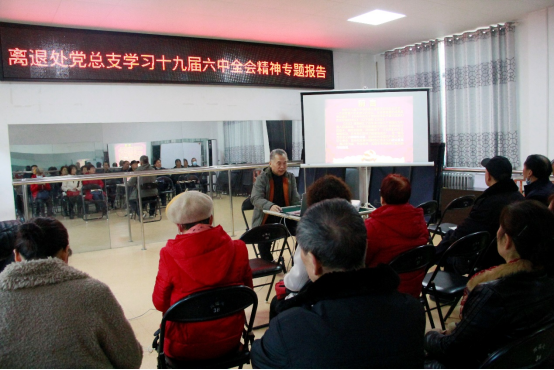 11月25日上午,离退处举行学习贯彻党的十九届六中全会精神宣讲报告会。我校老科协、老教授协会副会长,政法学院原院长石玉平教授作了题为《中国共产党第三个历史决议的历史地位和指导意义》的主题宣讲报告。离退处党总支理论学习中心组成员和学校“两协会”理事参加了会议,报告会由离退处党总支书记杨辉主持。