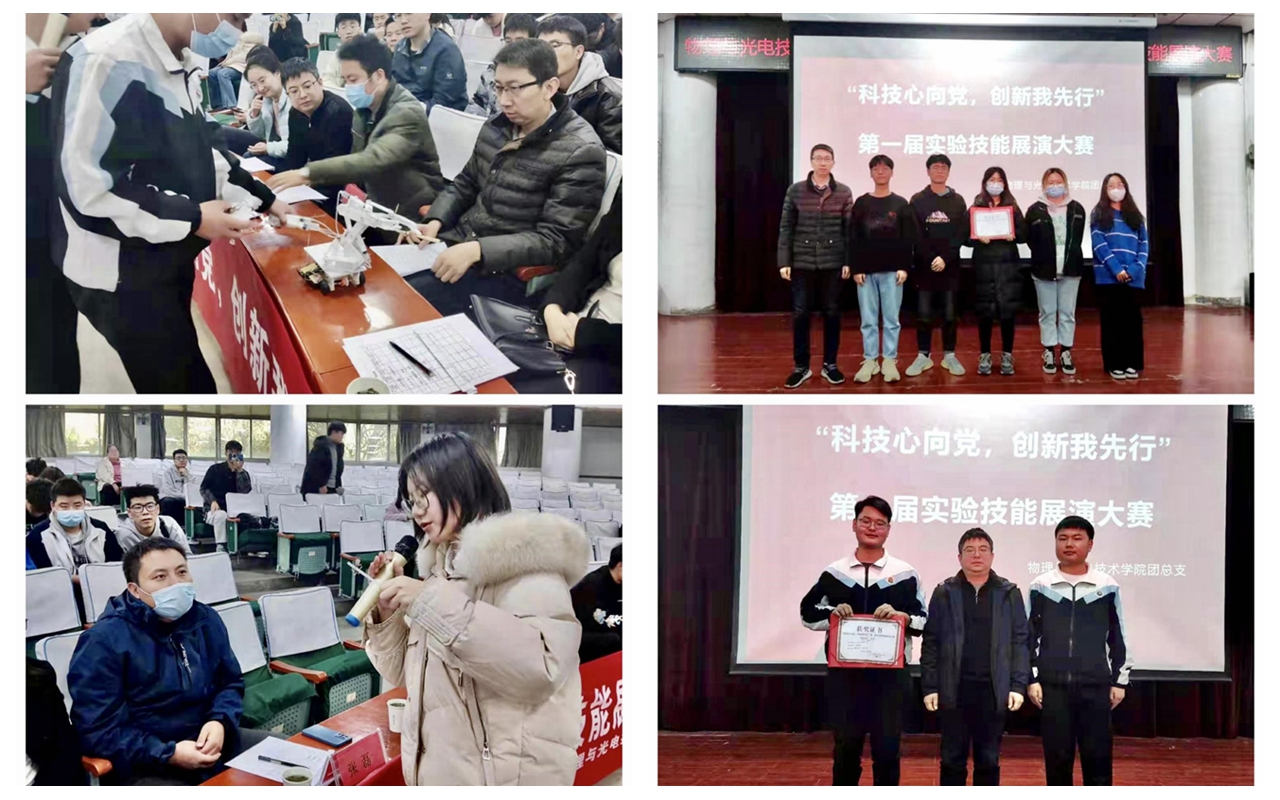 为响应国家创新驱动发展战略,提升学生学术科研创新能力,11月24日下午,物理与光电技术学院在石鼓校区综合楼二楼学术报告厅举办我校第五届“明理杯”科技学术节二级学院活动——“科技心向党,创新我先行”第一届实验技能展演大赛。学院党委副书记陈冠男,副院长刘飞、周新淳及部分教师、辅导员担任大赛评委,2021级部分学生现场观看了比赛。
