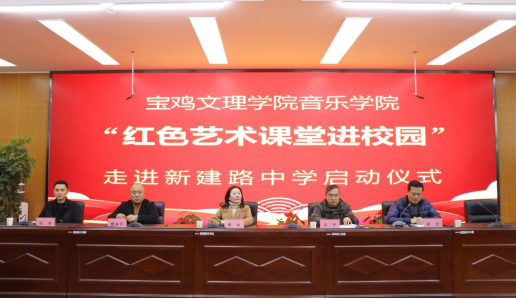 为进一步加强革命传统教育、爱国主义教育,把红色传统发扬好,把红色基因传承好,12月9日下午,音乐学院“红色艺术课堂进校园”活动在新建路中学举行。音乐学院党总支书记黄玮,党总支副书记、副院长樊振宇,新建路中学党总支书记王平参加了活动。活动由新建路中学副校长张靖主持。