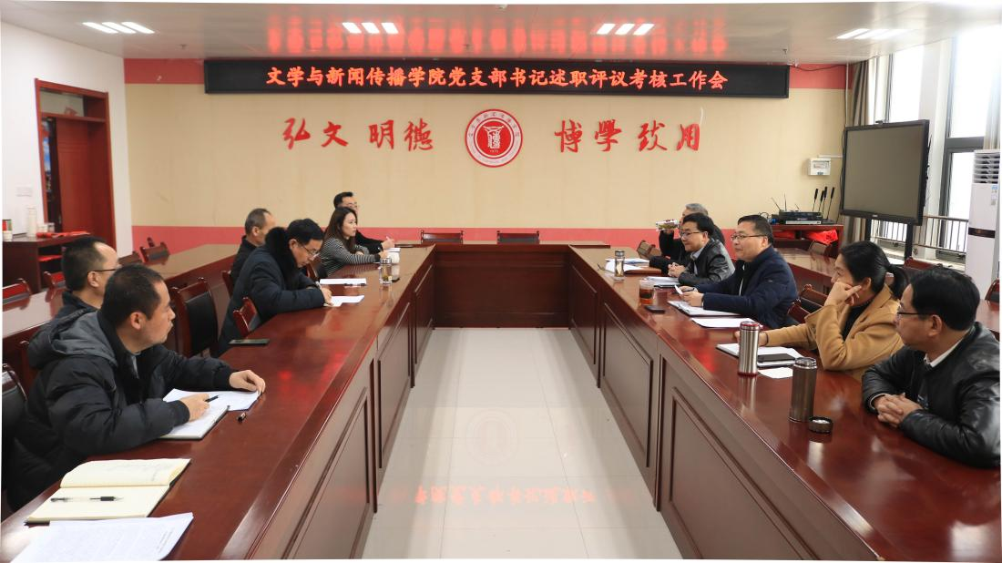 1月23日下午,文学与新闻传播学院在高新校区博文楼1401召开2021年度党支部书记述职评议考核工作会。学院党政领导、党委委员、各党支部书记、党政办公室主任参加了会议。会议由学院党委书记郭锋航主持。