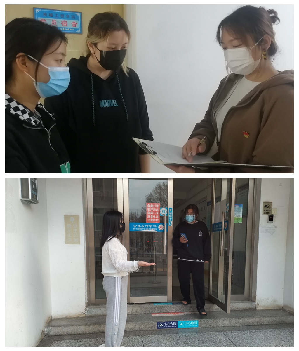 “组织员”——先锋队以同楼栋、同楼层原则对接包干学院244间宿舍,协助开展防疫信息登记、健康监测、秩序维护等各项工作,搭建网络互助平台,收集学生亟待解决的生活难题,确保疫情防控阶段学院各项工作稳定开展。