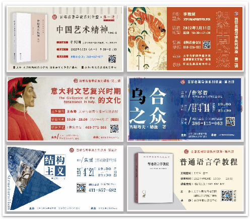 讲座共举办6场,先后由文学与新闻传播学院李剑清教授导读徐复观的《中国艺术精神》、李雅妮副教授导读王德威的《想象中国的方法》、王永奇副教授导读的《意大利文艺复兴时期的文化》、仵军智副教授导读古斯塔夫·勒庞的《乌合之众》、焦援博士导读高宣扬的《结构主义》和王红生博士导读索绪尔的《普通语言学教程》。