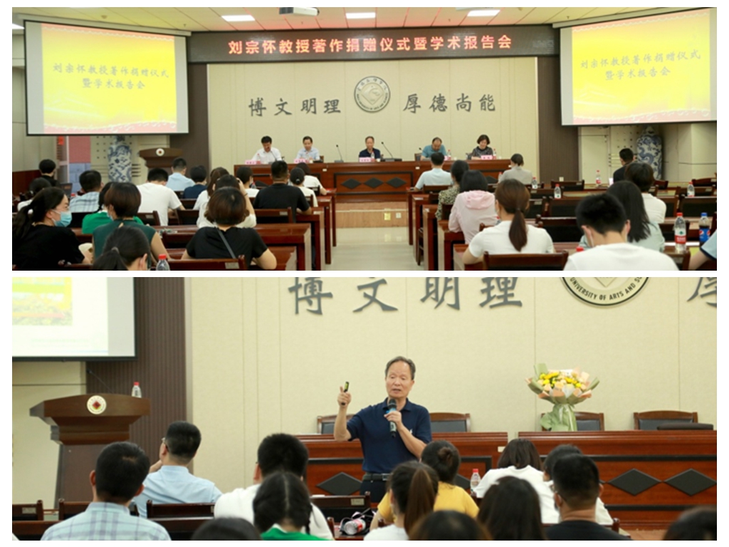 会上,校友总会秘书长、校友工作处处长刘景世向刘宗怀教授介绍了学校近年的发展情况和校友工作情况,向与会师生介绍了刘宗怀教授对我校事业发展所作的贡献。刘宗怀教授感恩母校曾经的教导和培养,表示捐赠自己的著作是希望与广大师生、校友以及社会力量一起努力,为母校建设和国家教育事业发展贡献力量,并祝福学弟学妹们学业有成、学有所获,祝福母校事业蒸蒸日上、再谱华章。