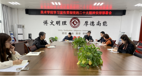 田富平就下一步美术学院学习宣传贯彻好党的二十大精神作了详细安排。他强调,学习宣传贯彻党的二十大精神是当前和今后一个时期的首要政治任务,一是要引导广大师生原原本本学习研读党的二十大报告和党章,认真领悟党的二十大提出的新思想新论断、作出的新部署新要求。二是要精心谋划,周密部署,开展内容丰富、形式多样的宣传教育活动,切实增强感召力、凝聚力、和影响力。三是要同广大师生思想实际相结合,要能领会、可落实,推动党的二十大精神走进基层、走进群众、深入人心。四是要同广大师生的本职工作和岗位相结合,特别是同美术专业结合起来,同立德树人、科研、创作和当前疫情防控结合起来,产生具有强大的凝聚力和引领力。五是全体师生要以务实的姿态去落实会议精神,党员领导干部、全体教师要将自己所学、所感、所悟及时传达给学生,用党的初心使命感召青年,做好青年大学生的引路人。