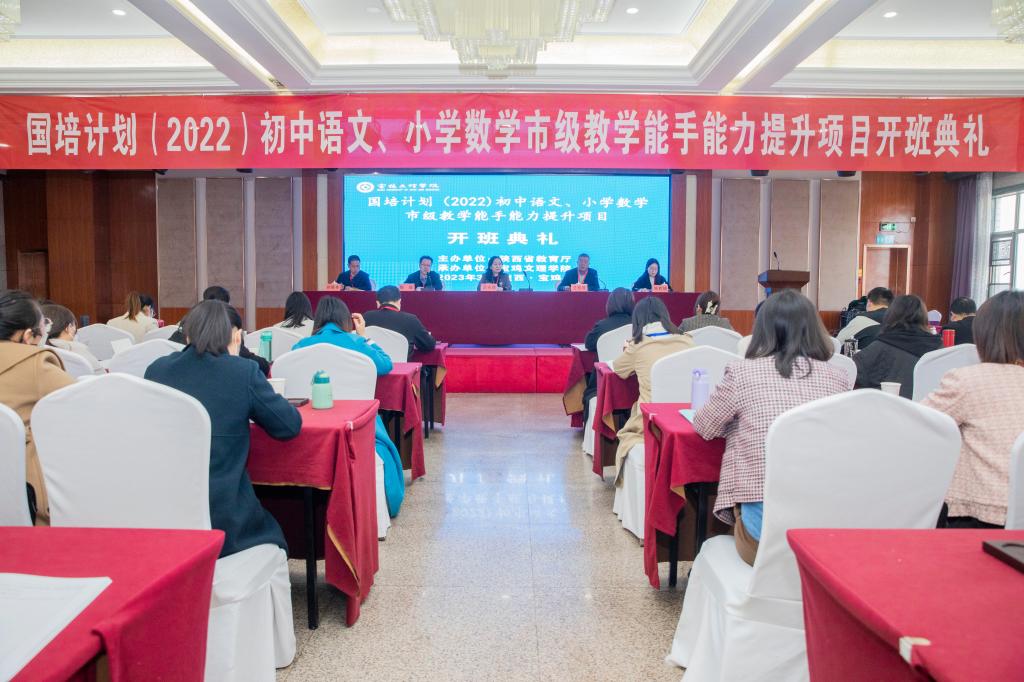 3月7日上午,由陕西省教育厅主办、我校承办的“国培计划2022”——陕西省初中语文和小学数学市级教学能手能力提升项目开班典礼在万利酒店举行。继续教育学院院长王永琪、文学与新闻传播学院院长兰拉成、数学与信息科学学院副院长杜红珍、国培计划培训主管刘画奇、语文学科班主任姚军、全省近百名骨干教师以及项目组全体成员出席开班典礼。继续教育学院副院长陶炜主持开班典礼。