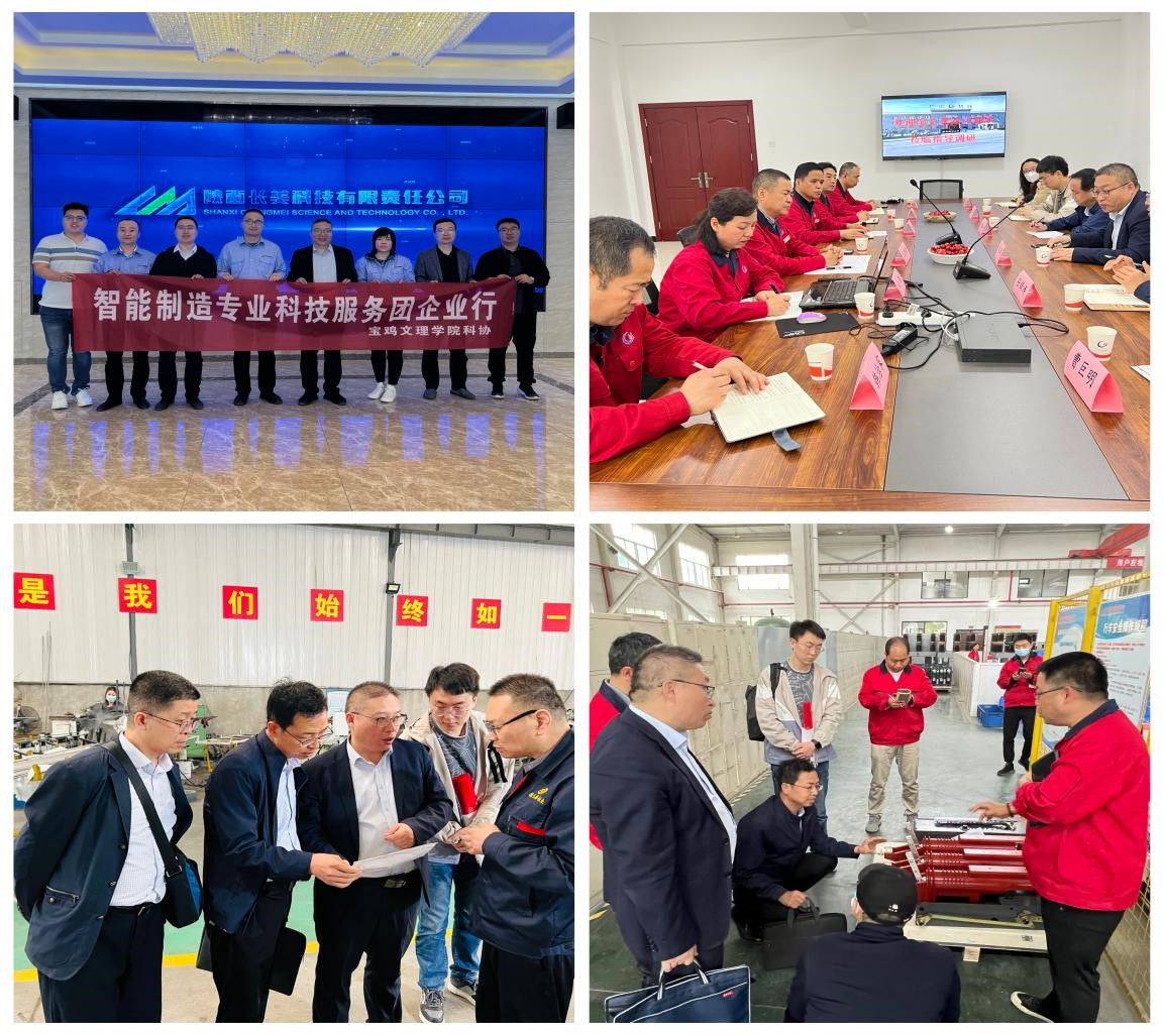 近日,由省科协牵头,省科普宣传教育中心组织实施的专家服务团科技赋能企业行工作在全省陆续开展。5月25至26日,我校科学技术协会组织经济管理学院、机械工程学院、电子电气工程学院、化学化工学院和计算机学院相关专业教师组建的“智能制造专业科技服务团”在宝鸡市开展为期两天的集中调研活动。
