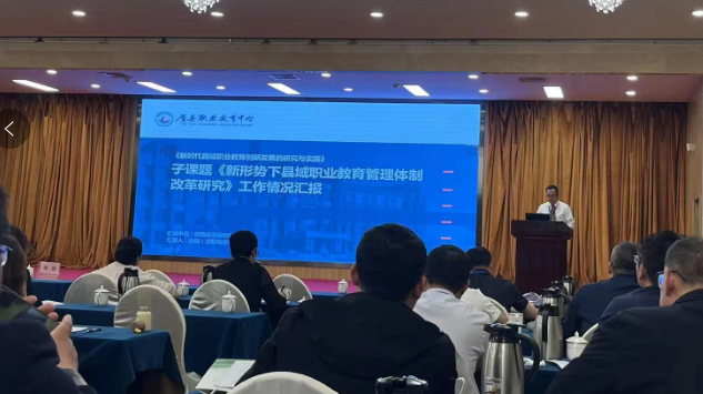 孙阳从建立协同机制、推行标准化改革、加速“三教改革”三个方面对子课题《新形势下县域职业教育管理体制改革研究》进行了简要汇报。全国职教联盟专家委员会主任张志增教授对课题研究工作给予了充分的肯定,同时也寄予了很高的期望。