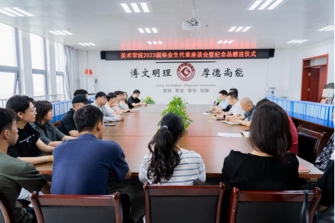6月16日上午,美术学院在高新校区博文楼1301会议室举行2023届毕业生代表座谈会暨纪念品赠送仪式。学院党政领导、学生辅导员及2023届毕业生代表参加了会议,会议由学院党委书记田富平主持。