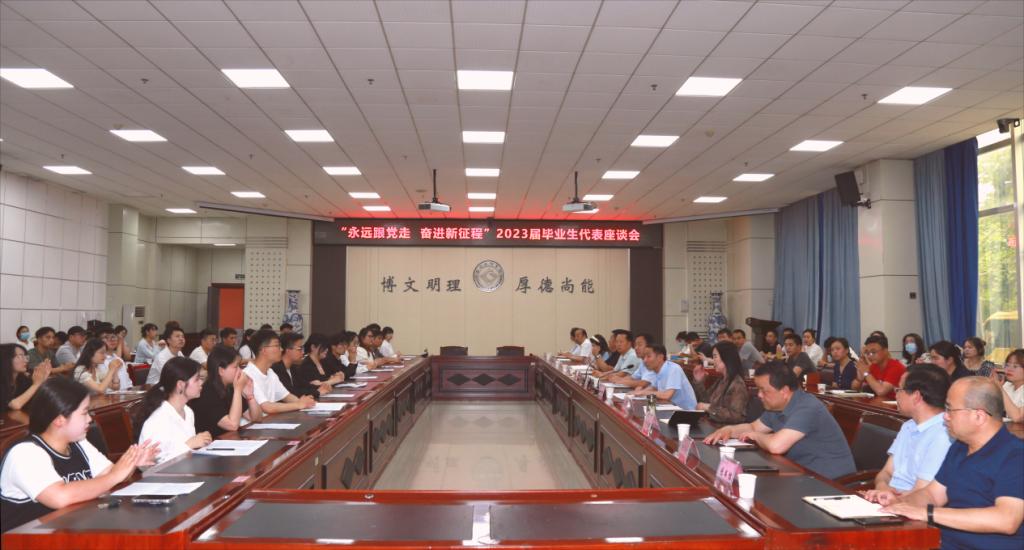 6月16日,我校在高新校区甘棠厅召开了“永远跟党走·奋进新征程”2023届毕业生代表座谈会。座谈会由研工部副部长龙涛主持。