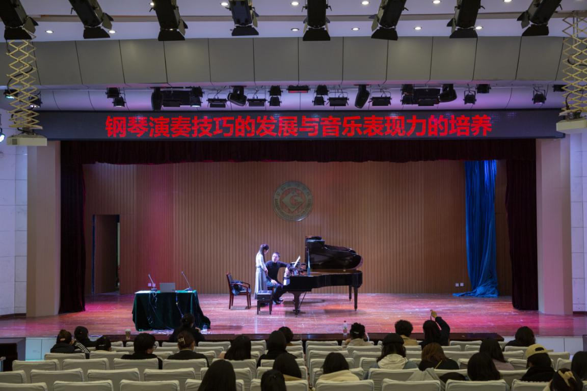 签约仪式结束后,西安音乐学院张洹浩副教授在高新校区音乐厅作了题为《钢琴奏技巧的发展与音乐表现力培养》的学术报告,并作了现场指导教学。当晚,张洹浩副教授、演奏家徐岩松和我校常萌老师共同为大家献上了一台精彩的音乐会,为本次签约仪式画上了圆满的句号。