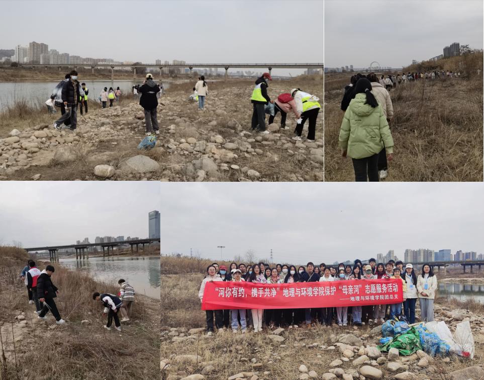在保护母亲河日来临之际,3月8日下午,地理与环境学院在宝鸡市渭河河滩开展“河”你有约,携手共净——保护“母亲河”志愿服务活动。