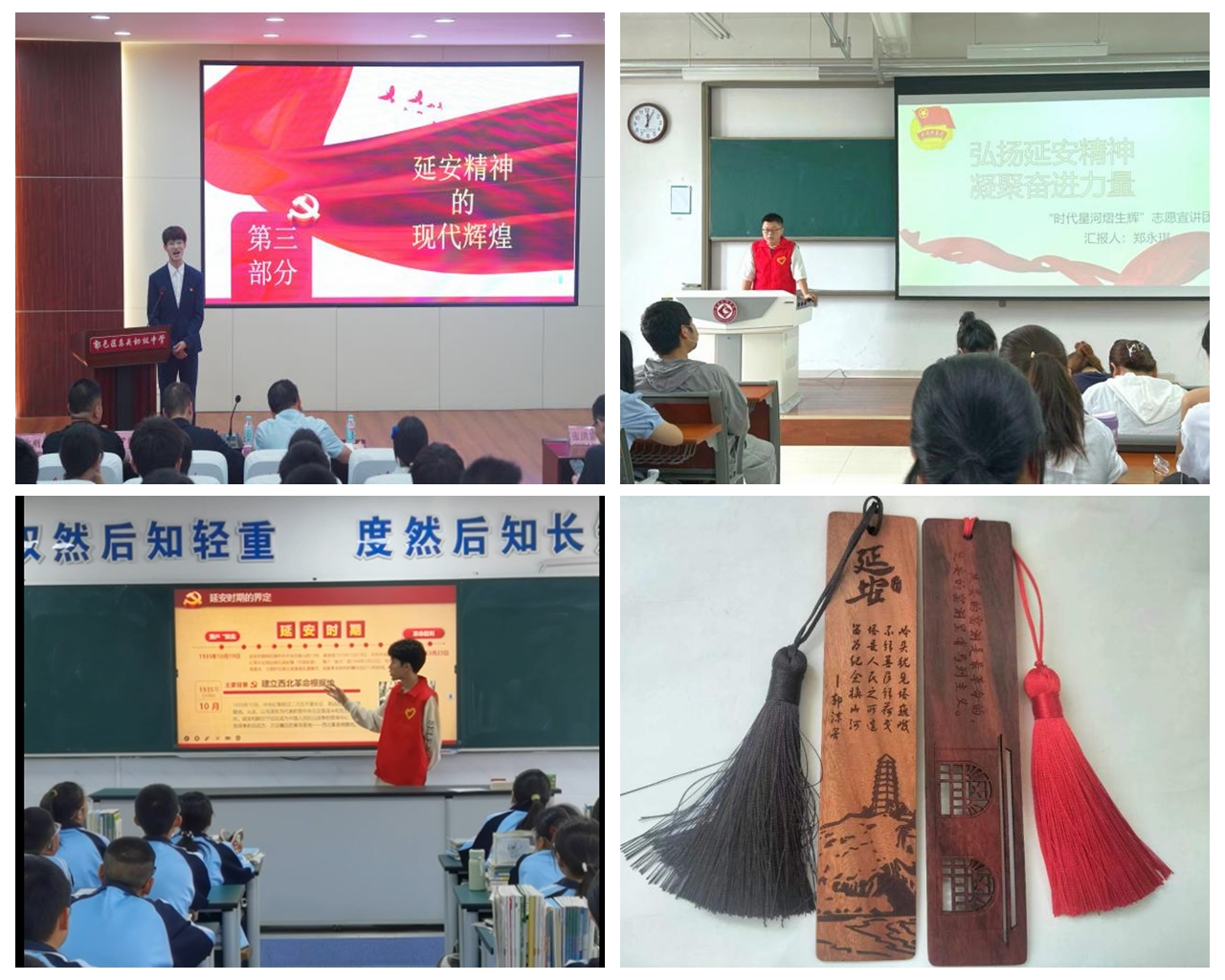 推动传承转化,创作文创作品。宣讲团依托广告类专业优势,组织学生设计制作了以宝塔山、窑洞为主题背景,以延安精神基本内涵为核心内容的文创书签。通过开展“知识竞答换书签”活动,以书签为媒介传递延安精神,让更多的人进一步了解和学习延安时期的革命故事。