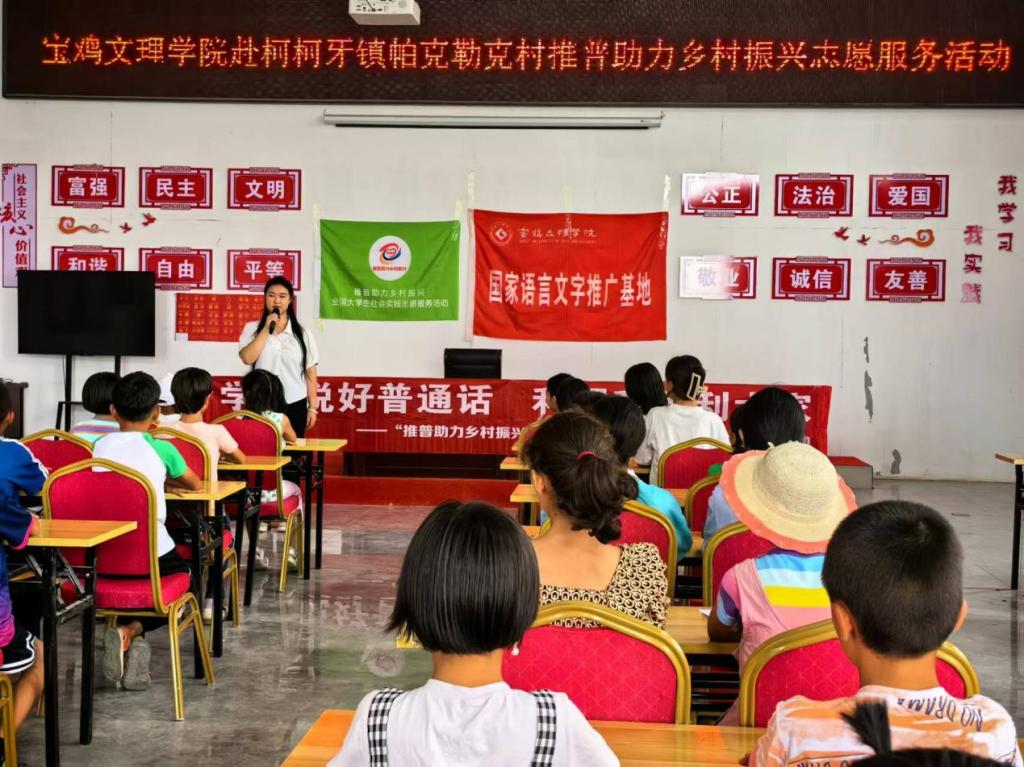 7月31日至8月6日,我校文学与新闻传播学院部分师生前往新疆阿克苏地区温宿县柯柯牙镇帕克勒克村开展“书同文 语同音 人同心”推普助力乡村振兴社会实践志愿服务。村党委第一书记张玉良和我校国家语言文字推广基地何艳萍副教授参加开班仪式。