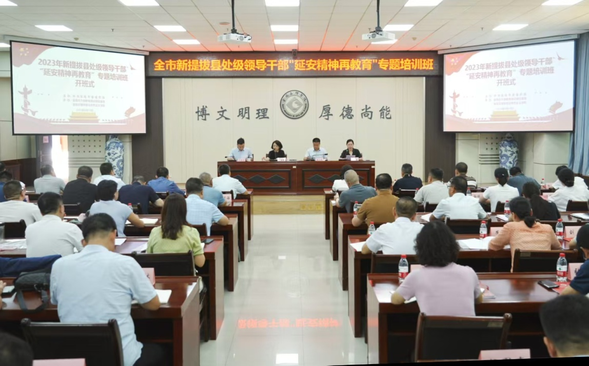 近日,由宝鸡市委组织部举办、宝鸡市干部教育培训高校基地承办的“全市2023年新提拔县处级领导干部‘延安精神再教育’专题培训班”在我校举行。校党委副书记、纪委书记、监察专员沙红梅,宝鸡市委组织部副部长王小龙出席开班式。宝鸡市干部教育培训高校基地主任王红梅教授主持开班式。