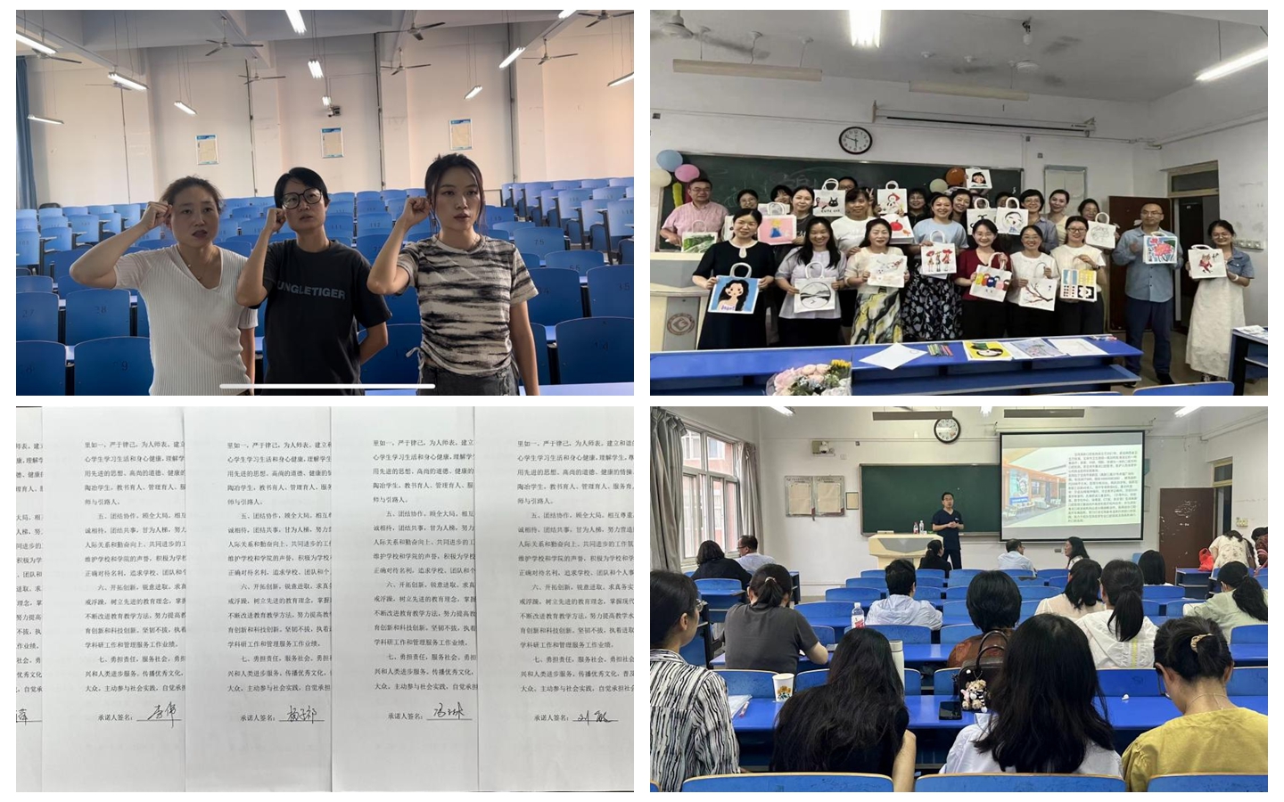 一份职业的承诺。在9月18日教职工大会上,与会教师集体签订《外国语学院教师师德师风建设承诺书》。一份份承诺书,是外院人对教育事业的忠诚,是对学生的关爱,是对职业道德的坚守。