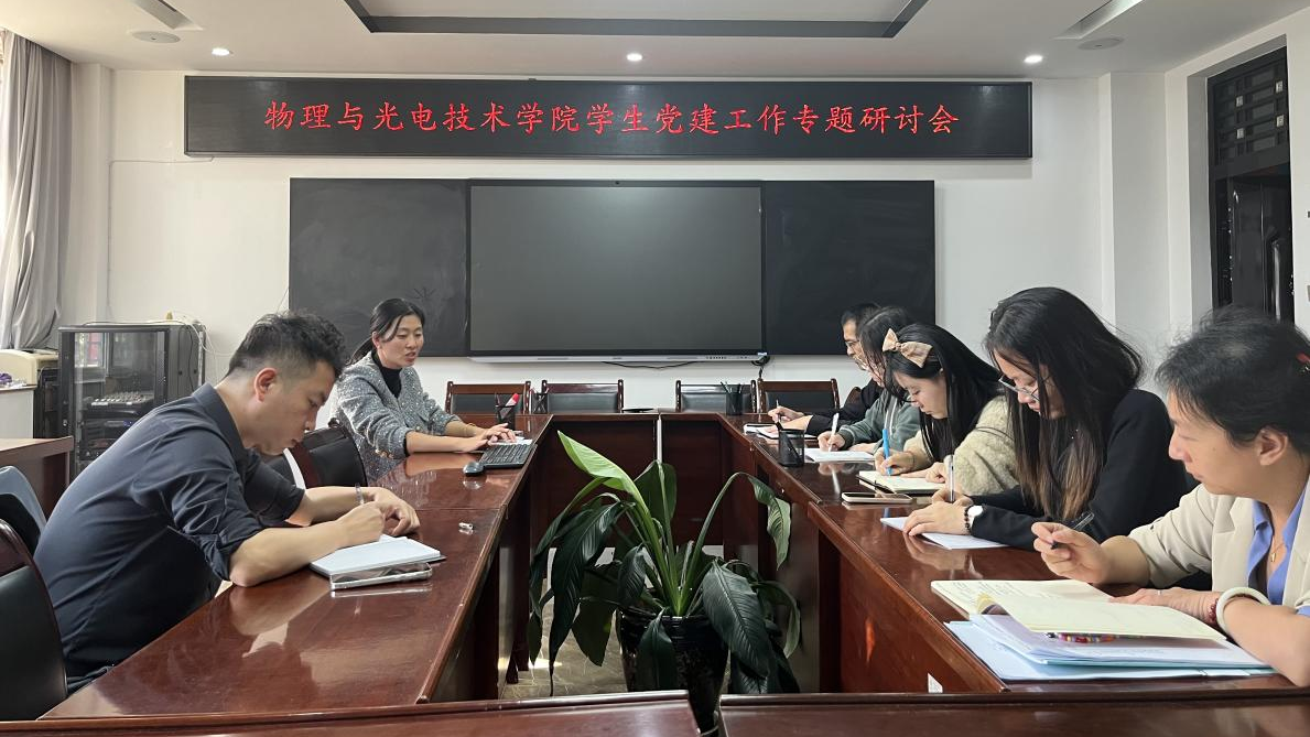 10月15日下午,物理与光电技术学院在石鼓校区主楼207会议室召开学生党建工作专题研讨会。学院党委副书记陈冠男、学生党支部书记、全体辅导员参加会议。会议由学院党委书记郝晓辉主持。
