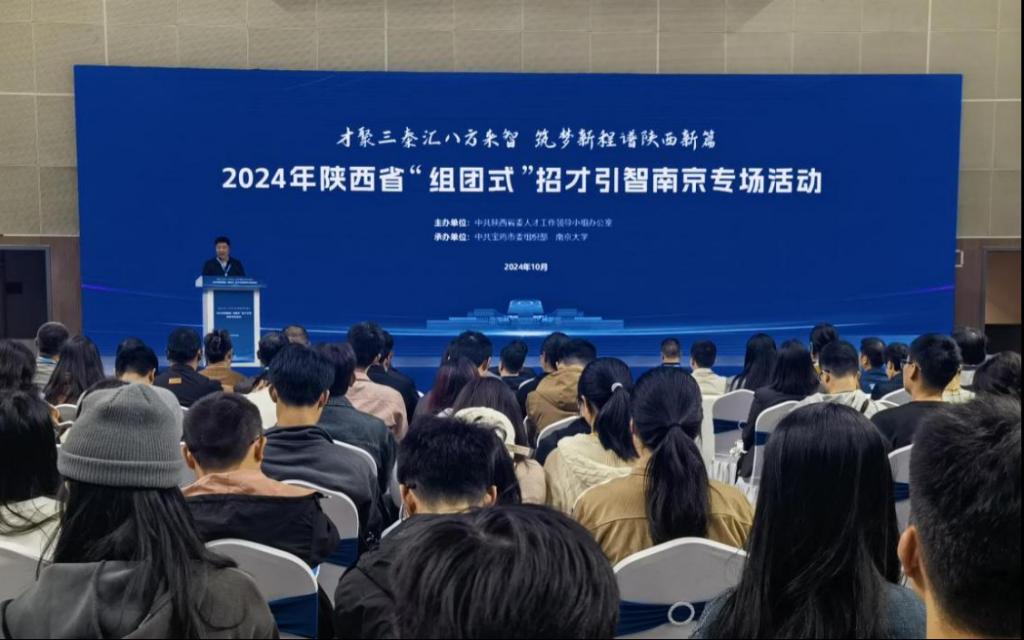 10月19日,由中共陕西省委人才工作领导小组办公室主办,中共宝鸡市委组织部、南京大学承办的2024年陕西省“组团式”招才引智专场活动在南京大学仙林校区举行。陕西省委组织部二级巡视员郭少锋、宝鸡市委副书记段小龙出席活动并讲话。我校副校长冯飞龙带队参加活动并作了学校推介和引进人才政策宣讲。
