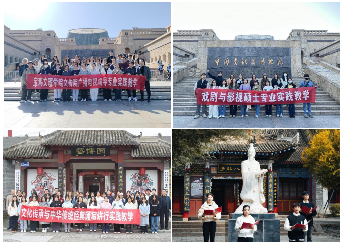 10月24日学院组织师生党员前往宝鸡市凤翔区开展“品味雍州古韵,传承经典文脉”主题党日活动。11月2日,广播电视编导、播音与主持艺术专业师生前往周公庙和周原博物馆举行“周礼文化与中华传统经典诵写讲行实践教学”活动;汉语言文学公费师范生前往千阳燕伋望鲁台,开展燕伋精神传承与师道教育实践教学;汉语言文学和编导专业学生前往宝鸡市张载祠、六艺坊开展关学精神传承与中华传统经典诵写讲行实践教学活动;师范生赴凤翔东湖开展苏轼文化传承与中华传统经典诵写讲行实践教学活动,在喜雨亭前,师生们集体诵读《喜雨亭记》,感受文化魅力。副院长孟改正在活动中为学生讲授《传承中华优秀文化,为中华民族伟大复兴贡献青春力量》微党课。同时,为传承发扬中华优秀传统文化,学院开展“传承发展中华优秀传统文化”主题作品征集活动。活动面向全院学生,征集文学作品、新闻作品、视频作品、优秀教学案例,全面营造浓厚的校园文化氛围,为同学们提供展示才华的平台,激发大家的创作热情。