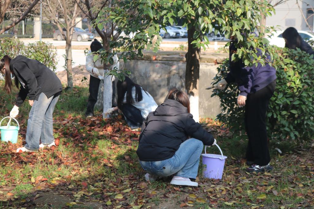 11月20日下午,文学与新闻传播学院开展“树木涂白换新装 防虫抗冻迎寒冬”义务劳动活动。