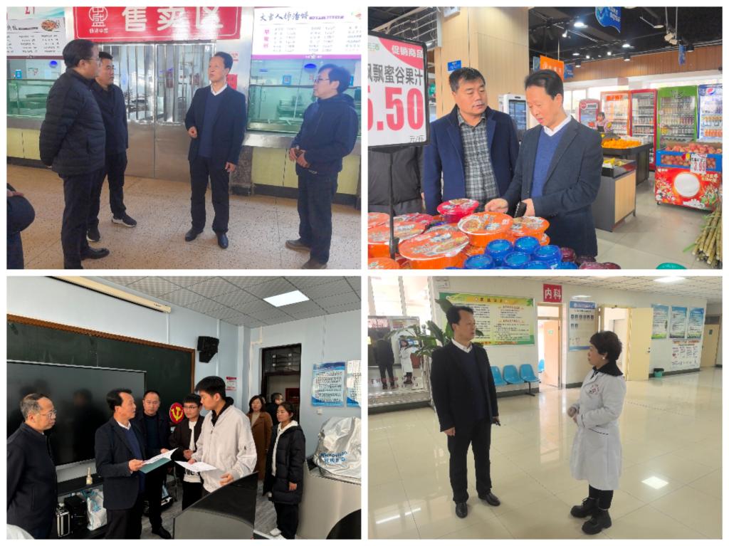 21日,于建伟带队检查了档案馆、校史馆、学生食堂、公寓、大学生超市、快递中心、校医院、羽乒馆、游泳馆、校车办公室、校园设施、经济管理学院和计算机学院实验室等场所,查看了各单位的安全管理制度、风险责任清单、消防安全设施、水电管网线路等,详细询问了相关责任单位安全工作落实情况。