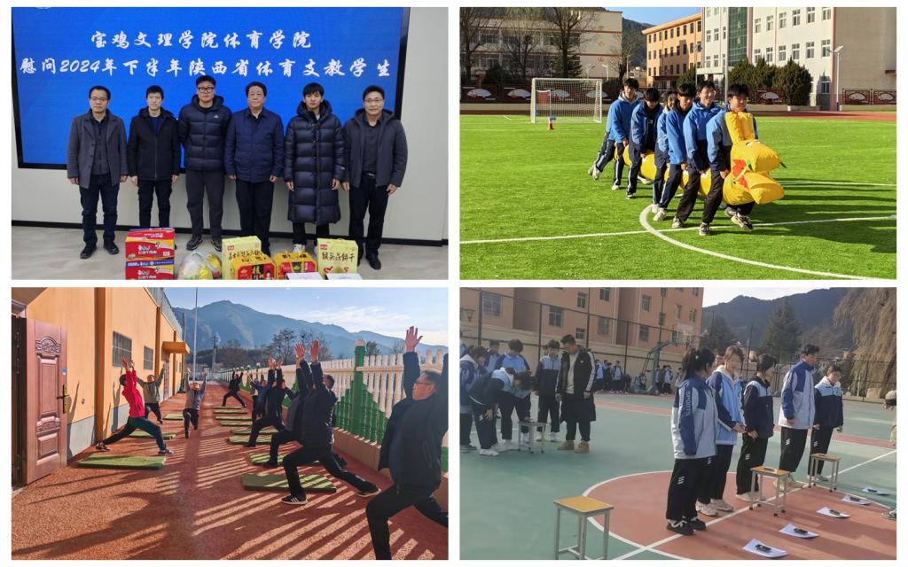 按照陕西省体育局要求,结合我校“双百工程”工作实际,2024年下半年体育学院安排5名体育教育专业学生在太白县的4所学校进行体育支教工作。体育学院党政领导与支教学校的师生进行交流,看望慰问支教学生,了解他们的工作、生活情况,勉励他们要以“四有”好老师的标准严格要求自己,勤于学、善于思、敏于行,在支教工作中锻炼提升自己,努力做一名优秀的体育教师。