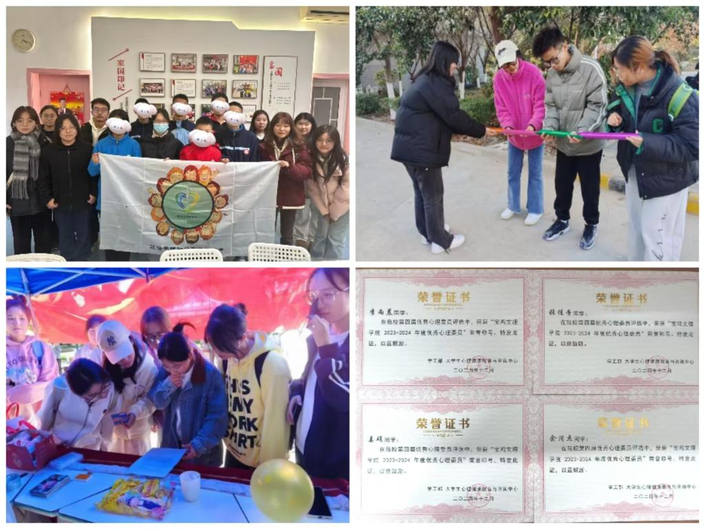 加强朋辈互助,发挥“互助”伙伴作用。学院注重发挥朋辈互助在学生心理健康方面的作用,加强班级心理委员队伍建设,积极开展心理委员工作能力培训,在学习生活中敏锐发现同学的心理变化。选拔学生成为朋辈心理互助员,发挥其在学校和学院心理健康教育工作的重要辅助力量作用,在学生中形成“自助-他助-互助”的心理辅导机制,使学生在平等互助的氛围下感受到支持、肯定和接纳,实现自我积极发展。本学期学院多次开展心理委员工作能力培训及团辅活动,其中4人获我校第四届“优秀心理委员”荣誉称号,4人被纳入学校学生朋辈心理互助联盟核心组。