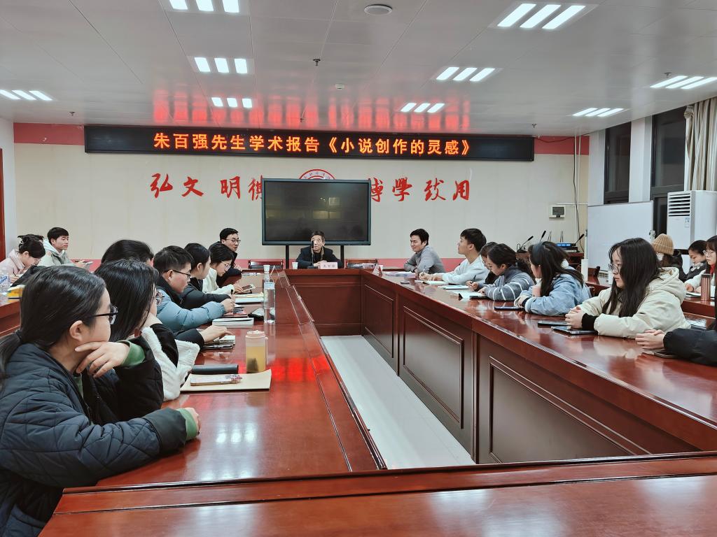 朱百强围绕文学创作的“灵感”源于何处这个话题,从三方面阐明了灵感来源于生活、来源于思考、来源于共鸣,并引用了中外著名作家或经典著作加以阐释分析。朱百强先生通过介绍自己的创作历程鼓励大家多看多听多写,做生活中的有心人,寻找出属于自己的表达方式,将文字锤炼的有滋有味。报告会后,朱百强同与会研究生就小说创作的态度和方法进行了交流。