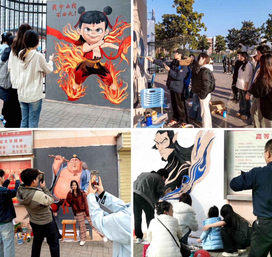为弘扬中华优秀传统文化,丰富校园文化生活,激发学生的艺术创作热情,近日,美术学院开展了以《哪吒》为主题的墙面彩绘活动,吸引了广大师生驻足观赏、拍照打卡。