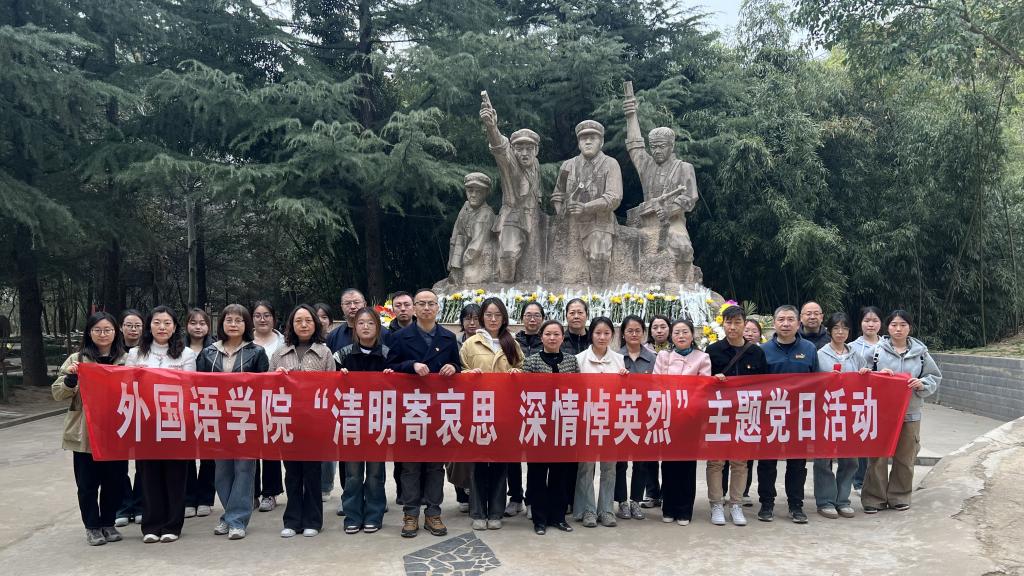 为缅怀革命英烈,弘扬革命传统,践行初心使命,继承烈士遗志,4月2日下午,外国语学院赴宝鸡烈士纪念园开展了“清明寄哀思,深情悼英烈”主题党日活动。学院党委委员、党政领导、党支部书记、教工党员、高新校区九号公寓“学思知行”“一站式”学生社区功能型党支部党员代表以及学院团员代表等参加了此次活动。