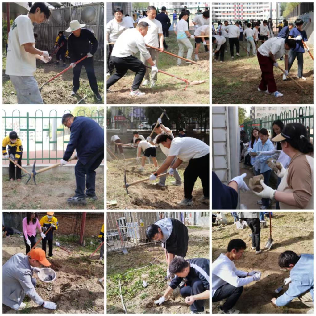 活动分别在电气楼东侧空地和综合教学楼北侧荒地同时展开,三个单位党组织分工明确,党员师生充分发挥党员先锋模范作用,纷纷拿起洋镐、镢头、耙子、铁锨、铲子等工具,干劲十足,挥动洋镐破碎坚硬的土层、深松耕层土壤,清除杂草垃圾、捡拾砖瓦石块,大家不怕脏、不怕累,热情高涨,展现出饱满的精神状态,井然有序地除草、翻土、播撒向日葵种子。经过三个小时的清理与种植,完成了既定劳动任务。