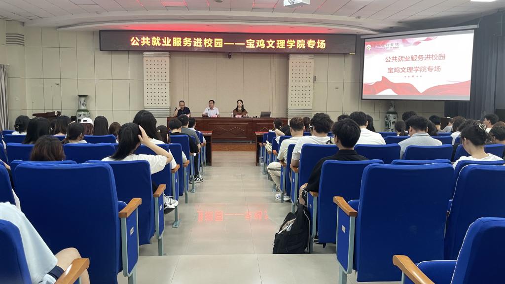 为帮助在校大学生了解就业新形势,明晰职业发展方向,5月22日上午由陕西省人才交流服务中心主办、宝鸡市公共就业和人才服务中心协办、我校承办的公共就业服务进校园——宝鸡文理学院专场活动在木铎厅举行。活动邀请陕西科技大学就业创业部主任罗晓婷担任主讲嘉宾,招生就业处处长周喜华主持活动。