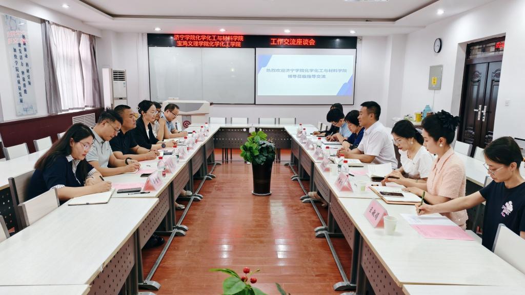 5月26日,济宁学院化学化工与材料学院党委书记马新蕾、院长刘涛一行6人来我校化学化工学院开展交流调研。座谈会在高新校区明理楼6楼化学化工学院会议室举行,化学化工学院党委书记兰佳主持会议。