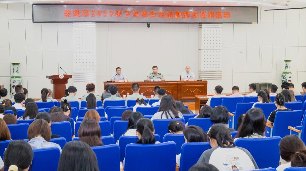 6月18日下午,宝鸡市2025年下半年女兵征集宣传咨询活动在我校高新校区木铎厅举行。宝鸡市征兵办公室副主任魏海峰参加活动并讲话。