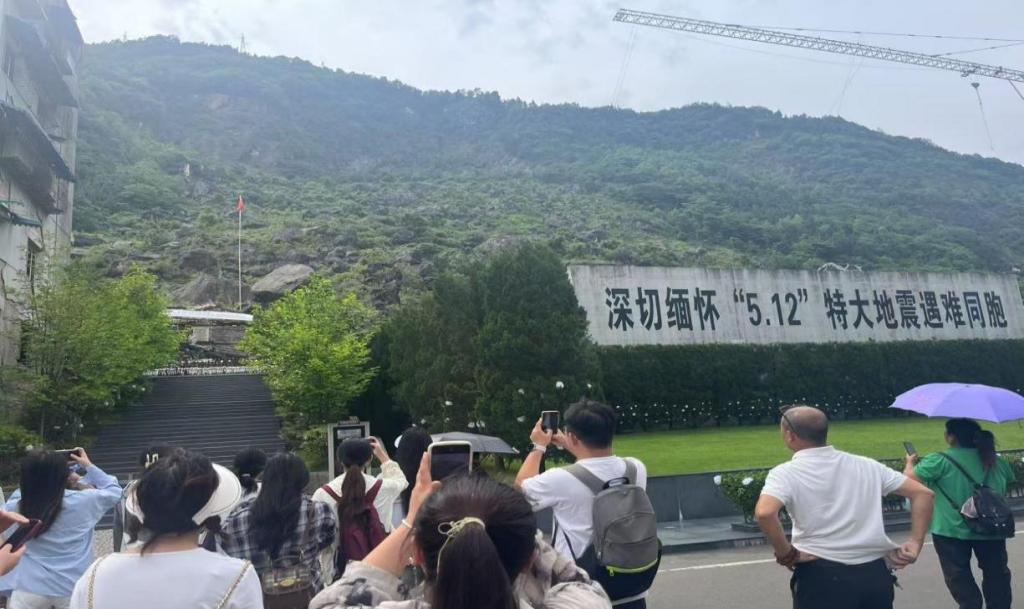 在灾害印记中感悟生命与担当。倾斜的教室梁柱、永远定格在14:28的时钟,刻着第一批抵达震中的解放军战士姓名的救援队纪念碑,还有在无气象资料条件下高空跳伞的15名空降兵故事,深深震撼着现场的每名学生。此刻,地震遗址的“断裂带”成为连接历史记忆与当代使命的“连接带”。人文地理与城乡规划2名专业教师现场教学,让学生在灾害实景中理解地理环境机理,强化生态保护与防灾减灾的社会责任感。课本上的逆冲断层等概念,此刻变成了脚下的地震陡坎,救援中的地理定位、路线规划,让学生明白了专业的价值更在守护生命的现场。这种“地质现象+救援案例”的教学模式,让抽象的思政概念转化为可触摸的现实场景。