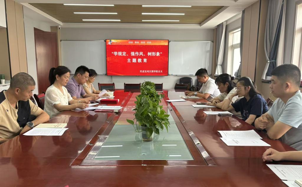近日,民进宝鸡文理学院总支召开“学规定、强作风、树形象”主题教育专题会议。民进宝鸡市委会副主委、宝鸡文理学院总支主委刘素红主持会议。