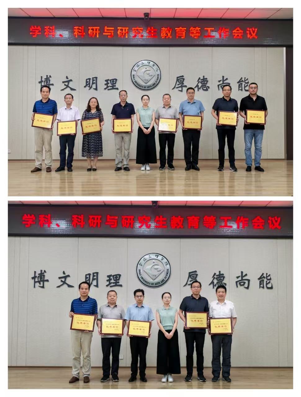 会上,凡明锦肯定了本学期学科建设、科学研究和研究生教育等方面取得的成绩,并对学科建设管理、博士学位授权点申报工作、加大研究生招生宣传、做好学位授权点周期性合格评估上级部门抽检工作、高层次科研项目申报组织、推进服务地方工作走深走实、加强科研诚信教育重点工作进行了强调。随后,宣读了关于表彰我校2024年度科研工作先进单位、学位与研究生教育工作优秀单位的决定,并为获奖单位颁奖。