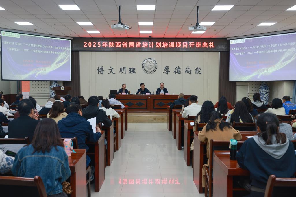 10月15日上午,由陕西省教育厅主办、我校承办的“国培计划(2025)”—农村初中生物骨干教师与“省培计划(2025)”—高中生物学科骨干教师能力提升培训项目开班典礼在我校甘棠厅举行。副校长冯飞龙出席开班典礼并讲话。开班典礼由继续教育学院院长韩星明主持。