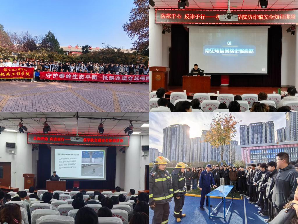为全面提升学生安全意识,近日,机械工程学院从抵制违规穿越秦岭、反诈防骗、交通及消防安全四大领域,组织开展了系列安全教育活动,为学生带来了生动易懂的安全知识普及体验。