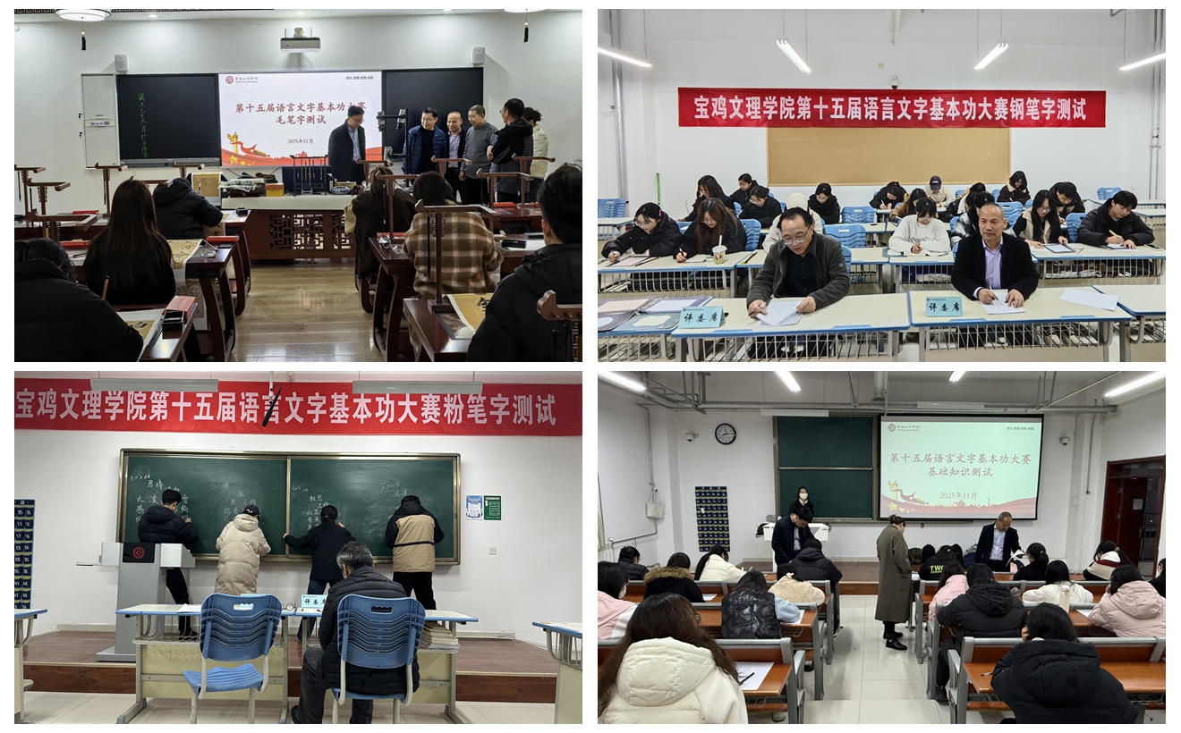 11月17日,学校在高新校区和石鼓校区分别举行基础知识测试,通过读音写字、汉字组词、纠正错字、补全成语和完善诗句五种题型考查学生在汉字规范、读音、认知等方面的基础素养,评选出一等奖32名、二等奖41名、三等奖75名。11月18日至19日,经各二级学院初赛遴选,154名选手参加了在博文楼举行的三笔字测试复赛,56人入围决赛。