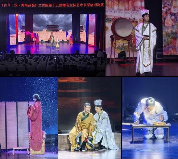 11月28日晚,文学与新闻传播学院在高新校区博文楼报告厅举办第十五届播音主持艺术节暨《古今一戏•周商品鉴》原创话剧展演。