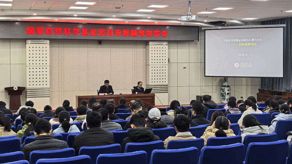 12月8日,学校在高新校区木铎厅举办了2026年国家自然科学基金项目申报辅导报告会。陕西师范大学胡道道教授应邀作了题为《国家自然基金申请书撰写交流——点清·线明·面全》的专题报告,报告会由科研管理处处长胡登卫主持。