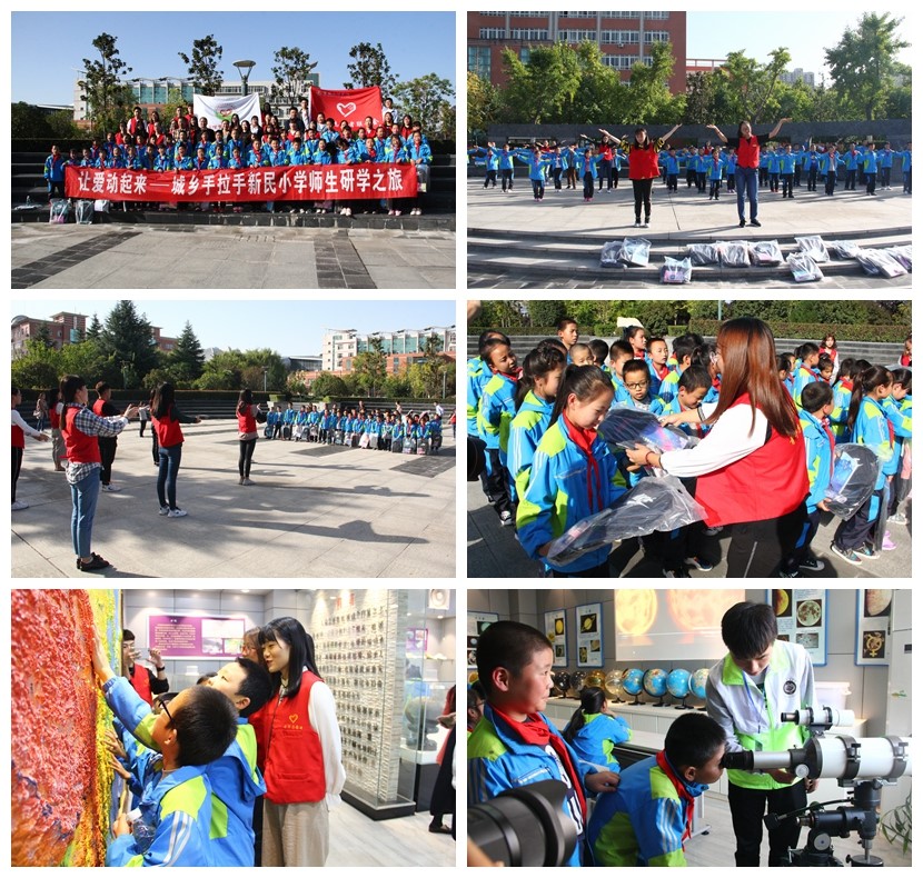 活动现场,大学生志愿者与新民小学的42名留守儿童开展了联谊活动,在志愿者的带领下,新民小学师生参观了地理与环境学院地质展厅和天文台,让来自西山的孩子们看到了地理构造的神奇,激发了对科学知识的渴求,萌生了对大学校园生活的向往。