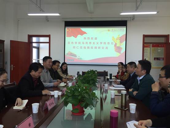 10月29日下午,广西百色学院马克思主义学院副院长李扬博士一行6人,来我校马克思主义学院进行调研交流。双方在博文楼1416会议室召开了座谈会,会议由我校马克思主义学院院长孙宏健教授主持。