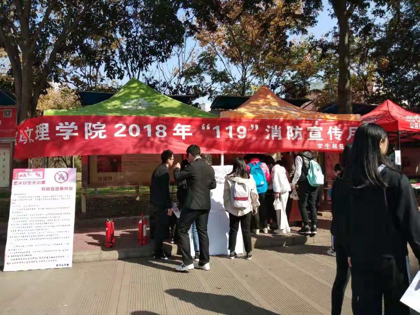 在第26个消防宣传日来临之际,我校“2018年消防安全宣传”活动在新校区举行,活动旨在倡导全校师生提高消防安全意识,树立消防观念。