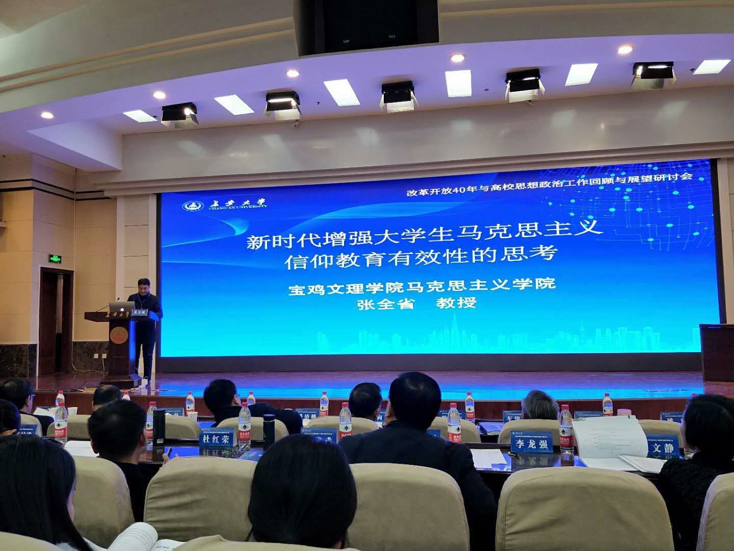 1月4日,陕西高校思想政治教育研究会“改革开放40年与高校思想政治工作回顾与展望学术研讨会”暨2018年年会在长安大学举行。我校马克思主义学院张全省教授应邀参加学术研讨会并作主题发言。