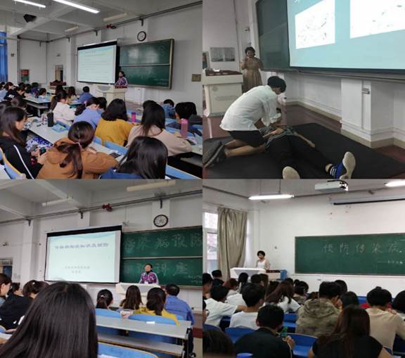 5月至6月,校医院开展了“常见病传染病及急诊急救知识培训”为主题的健康知识系列讲座。化学化工学院、地理与环境学院、数学与信息科学学院、计算机学院、教育学院等近800名学生参加了讲座,讲座由分别校医院副院长、副主任护师赵菊英和校医院副院长、主治医师李婉妮、医生邢丽媛主讲。